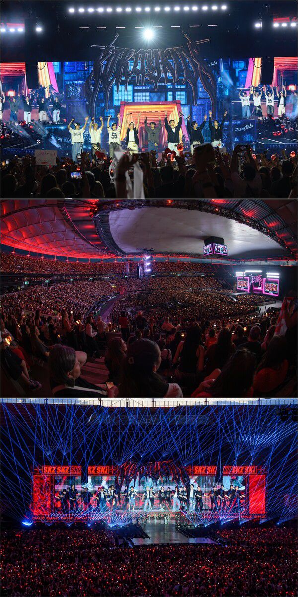 스트레이 키즈는 '소리꾼', '神메뉴'부터 빌보드 200 1위 앨범 수록곡, 유닛 무대까지 약 30곡을 선보이며 스타디움 분위기를 뜨겁게 달궜다. 팬덤 '스테이'의 떼창과 응원 속에서 'ITEM'으로 피날레를 장식했고, 멤버들은 "스테이 덕분에 완벽한 공연이었다"며 감사 인사를 전했다.