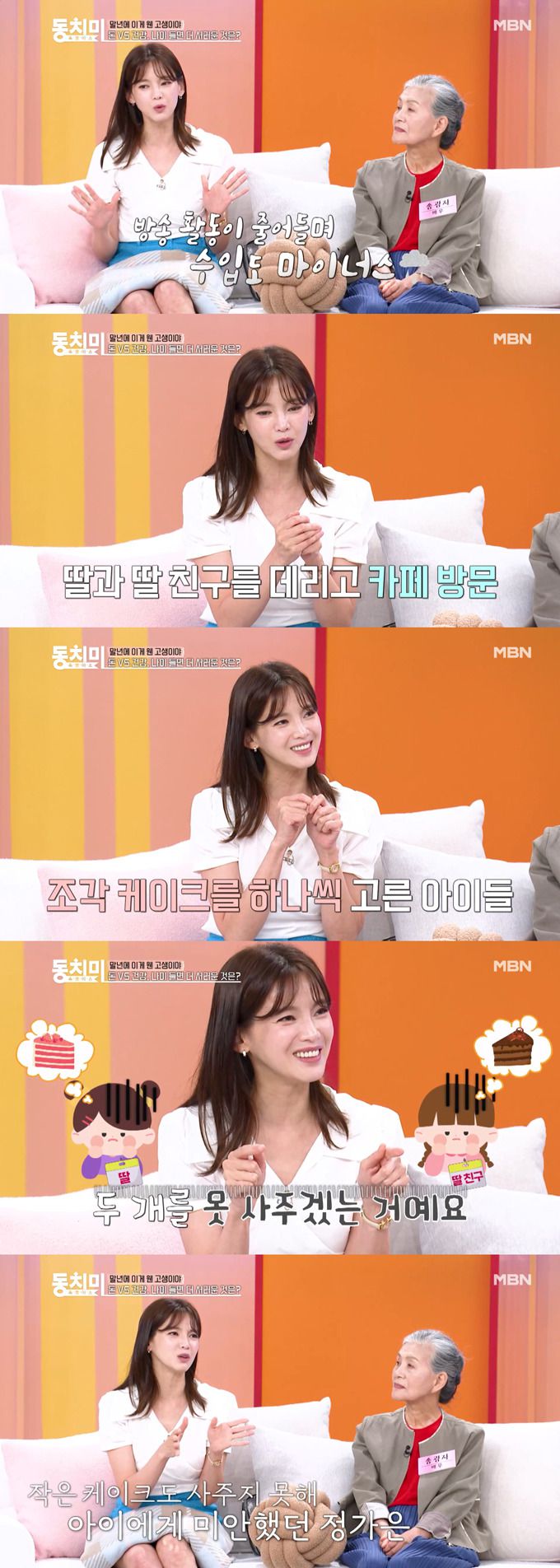 이어 "딸과 딸 친구를 데리고 카페에 갔는데, 아이들이 조각 케이크를 하나씩 먹고 싶어 하는데, 이걸 두 개를 못 사겠더라"라며 속상해했다.