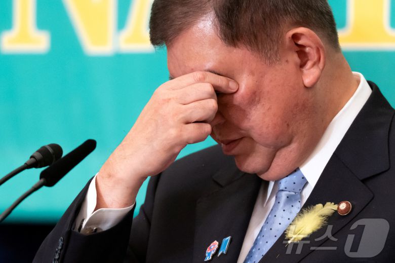 2일 이시바 시게루 일본 총리가 도쿄 기자클럽에서 열린 정당 대표 토론회 중 손으로 눈을 만지고 있다. 2025.07.02 ⓒ 로이터=뉴스1 ⓒ News1 김지완 기자