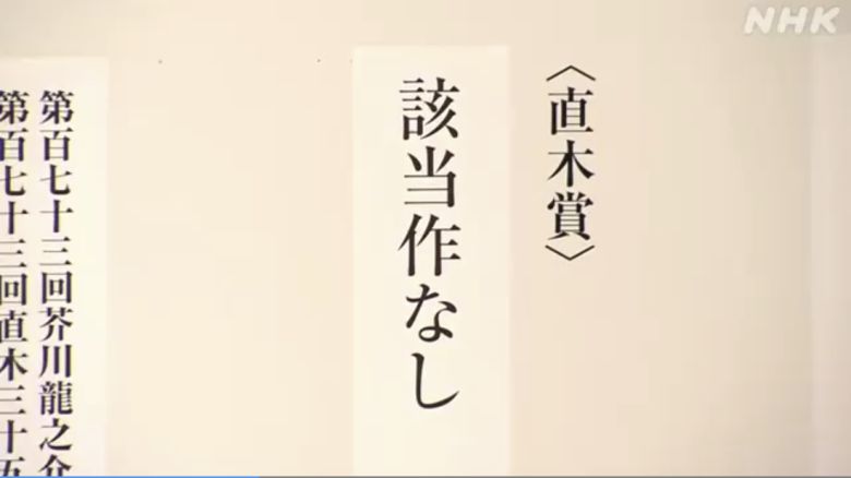 ‘나오키상 해당작 없음’ 문구가 적혀 있다. NHK 갈무리 |