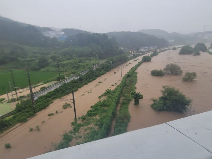 국토부는 하천 범람으로 열차 운행정지가 발생한 경부 일반선 침수 현장에 철도안전정책관과 철도안전감독관을 긴급 파견, 운행 통제 및 시설 피해 현황을 점검하고 있다고 전했다.