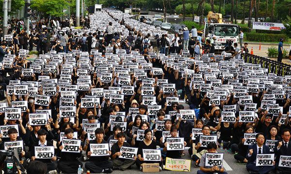 2023년 9월 국회의사당 앞에서 열린 서이초 교사 추모 집회에서 참가자들이 구호를 외치고 있다. 남제현 선임기자 |