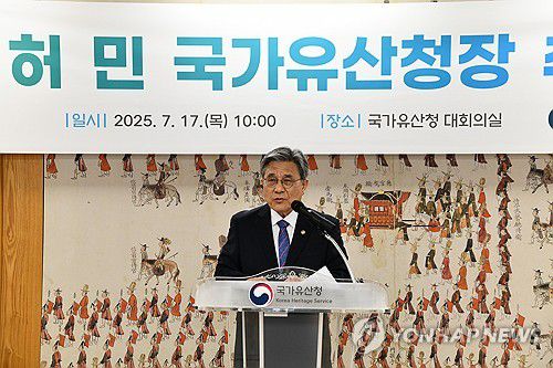 (서울=연합뉴스) 이세원 기자 = 허민(64) 신임 국가유산청장은 17일 "우리가 만든 'K-헤리티지', 'K-컬처'를 국민은 물론 세계인이 감동하고 기억할 수 있도록 기술과 감성의 균형 위에서 세계화를 이뤄내야 한다"고 말했다.