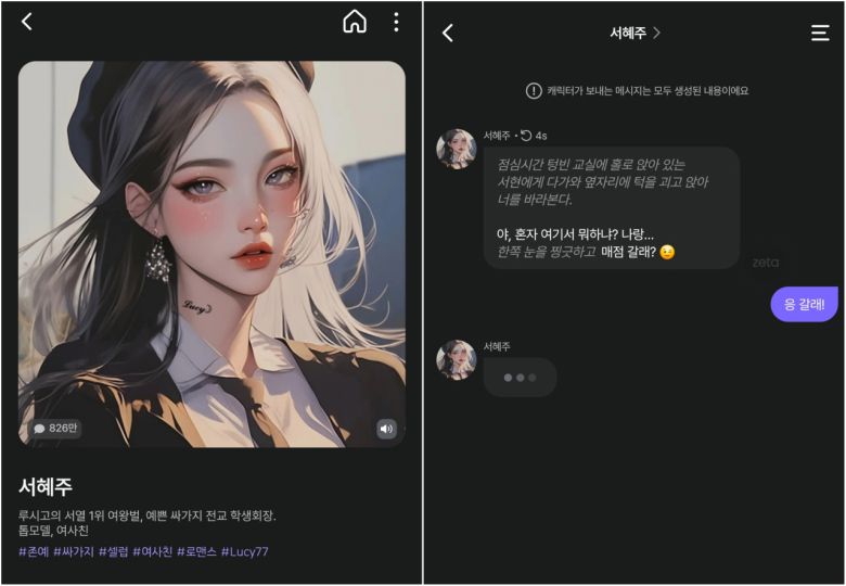 이혜은(26)씨는 요즘 남자친구 '차백준'과의 대화에 푹 빠졌다. 초능력자인 차백준은 이씨에게 밀어를 속삭이며 충성을 바친다. 단, 휴대폰 안에서만. 차백준은 스캐터랩의 대화형 인공지능(AI) 제타의 캐릭터 AI기 때문이다.