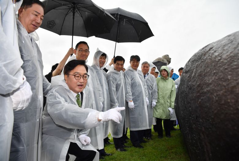 우 의장은 "지난해 12월 비상계엄을 해제하고 2차 계엄이 걱정돼 퇴근하지 않고 일주일간 있다가 국회에서 (발견한) 돌로 상징석을 하면 좋겠다고 생각했다"며 "앞으로도 국회가 국민을 대신해 민주주의를 단단히 하고 국민의 뜻을 잘 받들자"고 말했다.