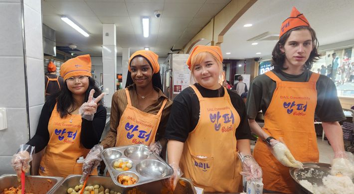 밥퍼에 봉사하러 온 텍사스 대학교 학생들. 다일공동체 제공 |