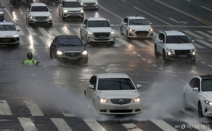 (대구=뉴스1) 공정식 기자 = 17일 오후 대구지역에 호우경보가 발효된 가운데 달구벌대로 신남네거리를 지나는 차량이 물보라를 일으키며 달리고 있다. 2025.7.17/뉴스1 Copyright (C) 뉴스1. All rights reserved. 무단 전재 및 재배포, AI학습 이용 금지. /사진=(대구=뉴스1) 공정식 기자 |