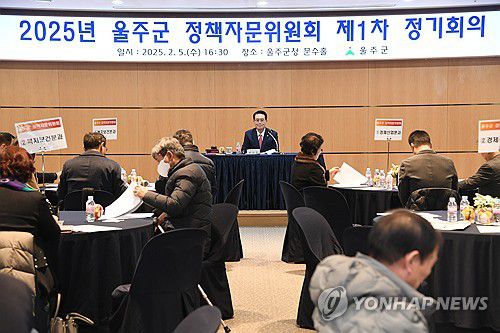 (울산=연합뉴스) 장영은 기자 = 울산 울주군은 17일 군청 문수홀에서 이순걸 군수를 비롯해 위원들이 참석한 가운데 '2025년 울주군 정책자문위원회 제2차 정기회의'를 열었다.