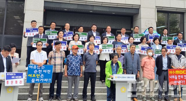 이와 관련 여수시의회도 이날 오전 전체 의원 26명이 참석한 가운데 '여수MBC 이전 계획 중단 및 여수시의 책임 있는 공론화 촉구' 성명서를 발표하며 "여수MBC가 아무런 사전 협의 없이 '순천 이전'을 기습적으로 언급하며 지역사회를 혼란과 분노에 빠뜨렸다"고 강하게 비판했다.