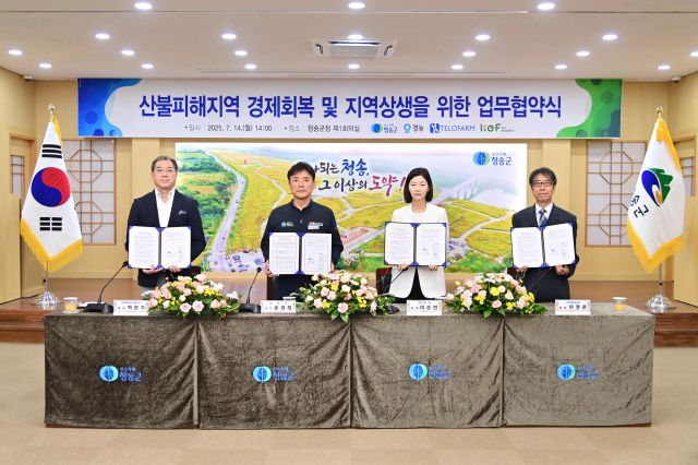 경북 청송군은 최근 산불 피해지역의 신속한 경제 회복과 지역-기업 간 상생 발전을 도모하기 위해 ㈜경농, ㈜텔로팜, 한국에브리팜(주)과 지역 상생을 위한 업무협약을 체결했다고 17일 밝혔다.