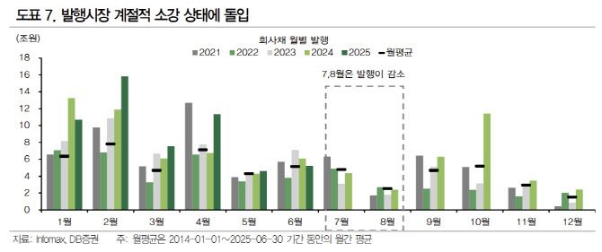 계절적 소강상태에 돌입한 회사채 발행시장. (자료=DB증권)