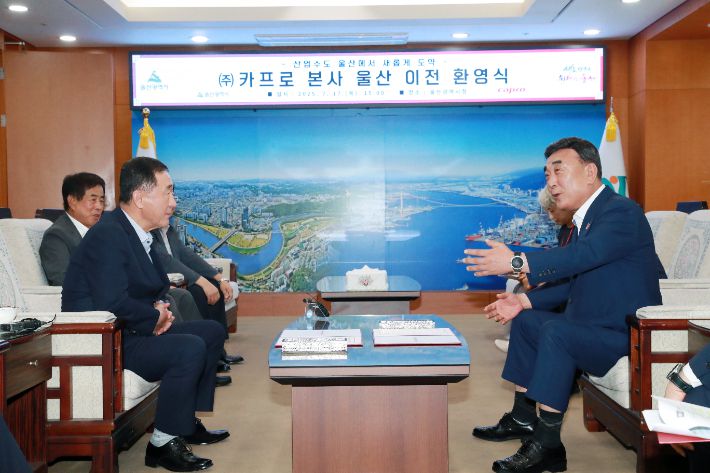 울산시는 17일 오후 시청에서 카프로 본사 울산 이전 환영식을 개최했했다고 밝혔다.