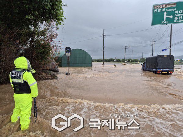 (충남=국제뉴스) 박의규 기자 = 지난 17일 새벽부터 충남지역에 내린 집중호우로 인해 충남경찰청은 갑호발령을 내리는 등 선제적 비상대응체계를 가동했다.