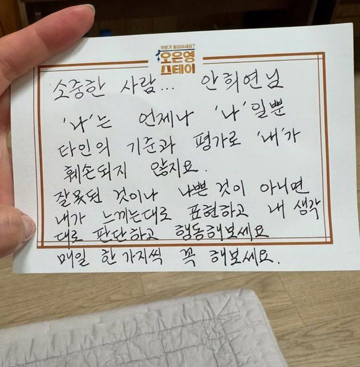 이어 "오은영 선생님, 따뜻하게 맞아주시고 깊이 있는 시선으로 안아주셔서 감사합니다. 고소영 선배님, 유세윤 선배님, 모두의 이야기를 정성으로 들어주시고 편안하게 해주셔서 감사합니다"라며 뒤이어 제작진에게도 감사의 마음을 전했다.