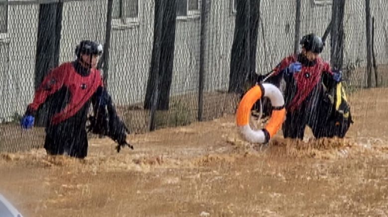 밧줄과 튜브를 든 구조대원들이 철조망을 잡고 조심스레 접근하는 모습도 보입니다.