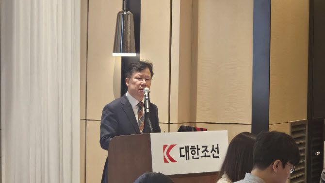 왕삼동 대한조선 사업부문 대표이사가 17일 서울 여의도에서 열린 기업공개(IPO) 관련 기자간담회에서 회사의 성장 전략 등을 설명하고 있다. (사진=대한조선) |
