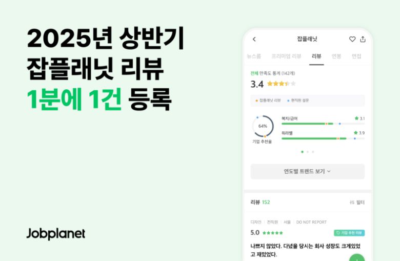 브레인커머스(대표 황희승, 윤신근)가 운영하는 커리어 플랫폼 잡플래닛은 2025년 상반기 리뷰 데이터를 집계한 결과를 발표했다고 17일 밝혔다.