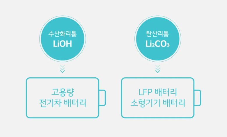탄산리튬은 니켈 함량이 적은 LFP(리튬·인산·철) 배터리용 양극재 원료다. 상대적으로 에너지 밀도가 낮고 용량이 클 필요가 없는 전기차나 소형 전자기기 배터리 제품 원료로 적합하다.