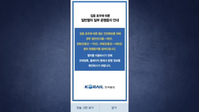 코레일 관계자는 '집중호우가 내린 일부 구간에서 일시적인 운행 중단이 발생하고 있다며 운행정보를 미리 확인해달라'고 당부했습니다.