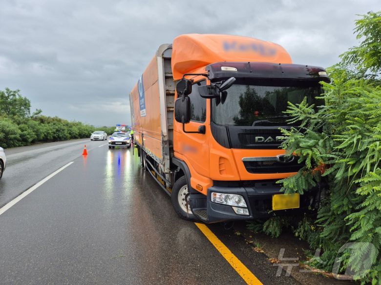 전북에 강한 비가 내리는 가운데 17일 전주시 덕진구 도도교차로에서 한 트럭이 빗길에 미끄러진 모습. (전북경찰청 제공. 재판매 및 DB금지) 2025.7.17/뉴스1 ⓒ News1 장수인 기자 |
