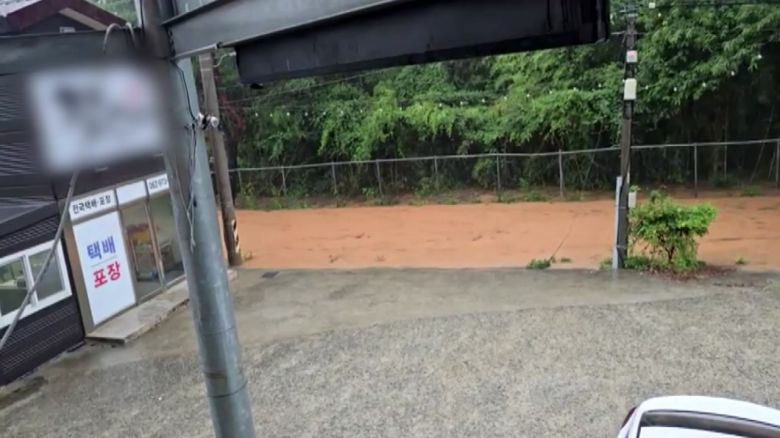 하천이 흘러넘쳐 논밭은 온 데 간 데 없고 일대가 물바다로 변했습니다.