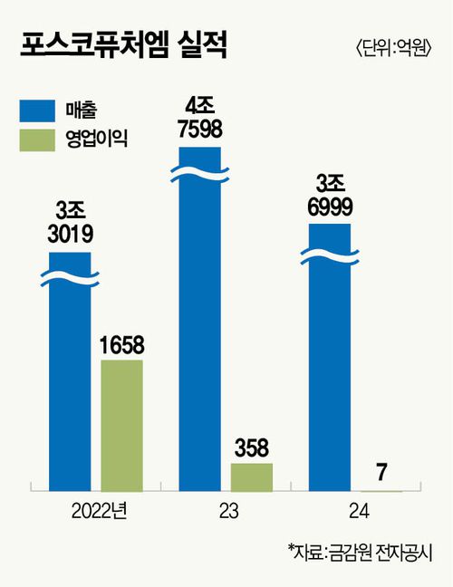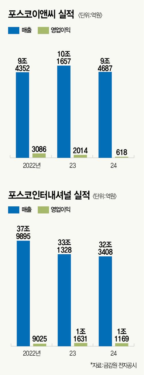 포스코그룹 차세대 성장동력으로 주목받았던 2차전지 소재 사업부터 녹록지 않다. 전기차 캐즘(chasm·일시적 수요 둔화) 우려가 지속되는 가운데, 미국은 인플레이션 감축법(IRA)으로 2차전지 소재 사업을 주도하는 포스코퓨처엠을 압박하고 있다. 야심 찬 설비투자 계획과 달리 현금 실탄은 부족하고 수익성은 매년 하락 중이다.