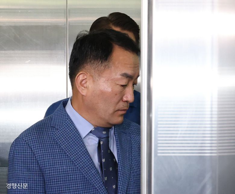 김계환 전 해병대 사령관이 채 상병 사건 수사방해 의혹과 관련해 2차 조사를 받기 위해 17일 서울 서초구 순직해병특검 사무실로 들어서고 있다. 김창길 기자