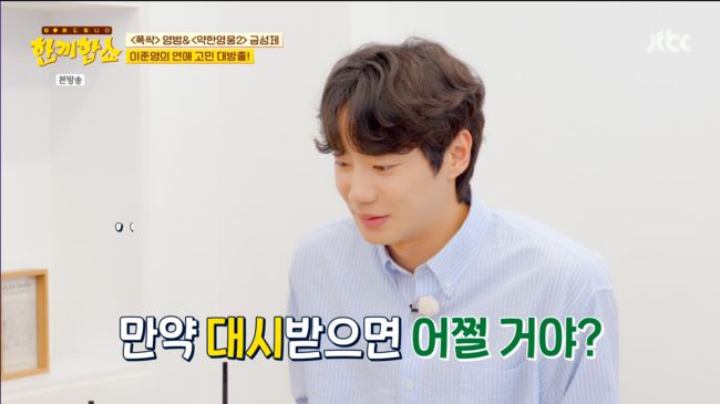 이준영은 동료들한테 대시를 받은 적이 없다고 밝혔고, 만약 동료가 대시를 하면 어떻게 할거냐는 질문에 “도망갈 거 같다”라고 말해 웃음을 안겼다. 김희선은 만약 본인 스타일이면 어떡할거냐는 질문에 이준영은 “그 자리에선 당장 말 못할 것 같다”라며 수줍은 모습을 보였다.