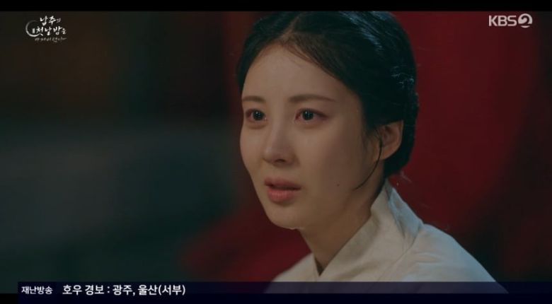 이날 방송에서 이번은 성현군 이규(이태선 분)에게 칼을 겨누며 "철천지원수여도 인사는 제대로 하라고 네가 그러지 않았느냐"고 했다. 이에 이규는 "지금 날 능욕하는 것이냐"고 물었다. 이번은 "과거의 일말의 죄책감도 연민도 모두 버렸다"고 한뒤 신하들에게 "이 대역 죄인을 끌고가라"고 명령했다.