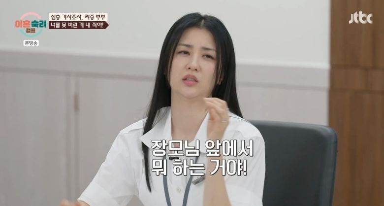 장모는 침착하게 "한 달에 80만 원을 줬다면, 물론 아내 입장에선 부족하다고 느낄 수 있다. 그렇다고 이혼까지 갈 문제는 아니다. 수시로 이혼 얘기를 하는 건 아니다"고 침착하게 조언하며 상황을 풀어보려 했다. 이어 "지금은 해결 방안을 찾는 게 먼저"고 부드럽게 충고했다.