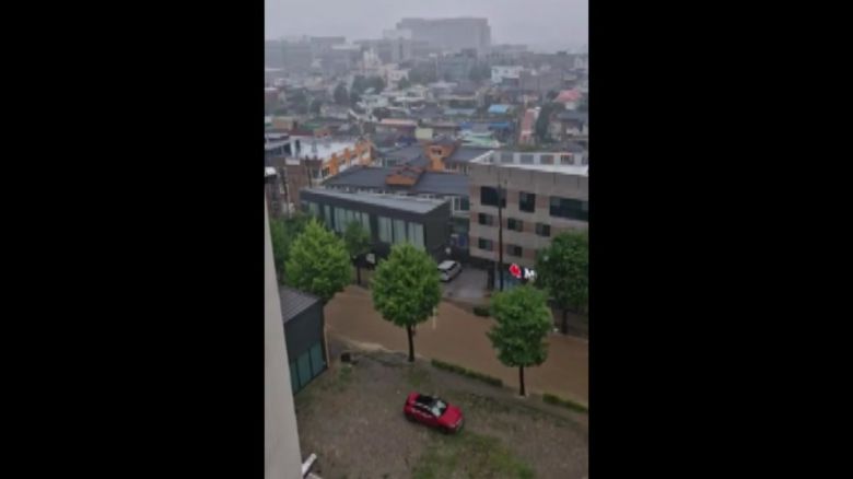 도로인지 하천인지 구분이 안 될 정도로 흙탕물이 거세게 흐르고 있습니다.
