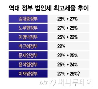 역대 정부 법인세 최고세율 추이/그래픽=이지혜 |