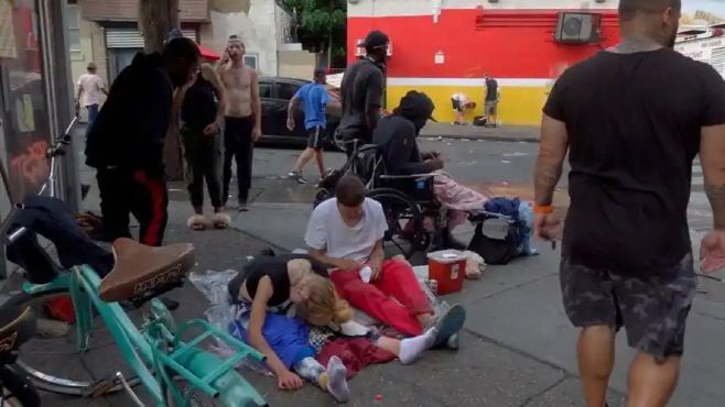 미국 샌프란시스코 거리의 마약 환자들. 상당수가 원산지가 중국인 펜타닐의 중독자로 알려져 있다. 미중이 이 문제로 인해 다시 정면충돌하고 있다./환추스바오(環球時報).