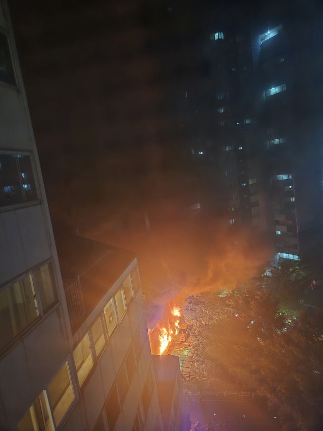 그러면서 "불꽃이 차량 위로 떨어지면서 사방이 다 불꽃으로 변했다"며 "아파트가 작다 보니까 관리사무소 자체도 없고 소방 벨도 안 울린 것 같다"고 했다.