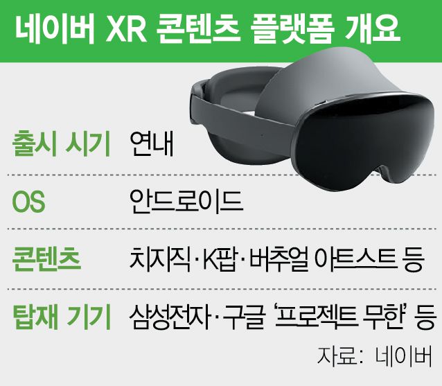 네이버는 안드로이드 운영체제 기반의 XR 콘텐츠 플랫폼을 연내 출시할 예정이다. 치지직, 케이팝, 버추얼 아티스트 등 다양한 콘텐츠를 XR 플랫폼에서 제공할 계획이다. 삼성전자(005930)가 구글·퀄컴과 협업 중인 기기 ‘프로젝트 무한’에 탑재된다. 현재 개발 중인 스마트 안경에도 탑재될 것으로 전망된다. 오한기 네이버 리얼타임 엔진 스튜디오 리더는 “미디어 경험을 XR로 적용하는 과정에서 기회들이 많다”며 “콘텐츠 문법이나 사용자 경험을 축적하면 글래스가 더 대중화됐을 때 네이버가 기존에 제공했던 컴퓨팅 경험들을 빠른 속도로 전할 수 있을 것”이라고 말했다.