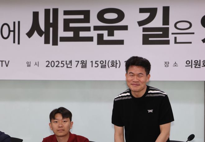 전한길 한국사 강사가 15일 오후 서울 여의도 국회에서 열린 ‘국민의힘에 새로운 길은 있는가?’ 토론회에서 인사하고 있다. 2025.07.15. 뉴시스 |