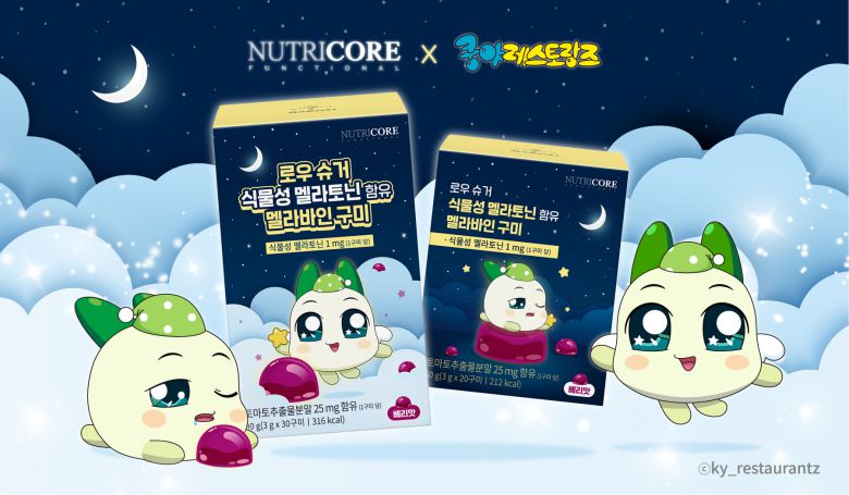 이번 콜라보를 통해 뉴트리코어 ‘로우 슈거 식물성 멜라토닌 함유 멜라바인 구미 패키지’에 쿵야 레스토랑즈의 아트웍이 반영된 신규 패키지를 선보이며 해당 패키지는 양파쿵야 인형 키링 1종이 포함된 구성이다. 관련 제품은 전국 올리브영 온라인몰과 카카오톡 선물하기에서 구매할 수 있다.