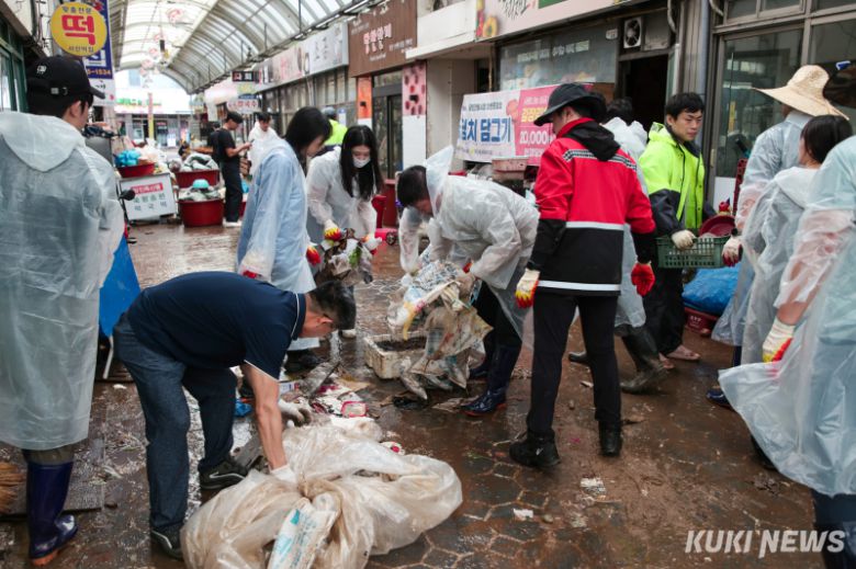 특히, 피해가 가장 컸던 전통시장에는 지난 17일부터 공무원, 경찰, 소방서, 자율방재단 등 1300명이 현장에 투입돼 폐기물을 처리하고 있으며, 양수기와 펌프차량을 동원한 응급 복구를 통해 복구율은 약 65%로 집계됐다. 18일 중 폐기물 85톤이 추가로 처리될 예정이다.