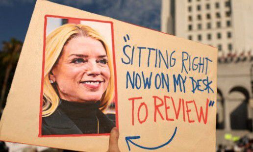 미국 로스앤젤레스 17일 열린 반정부 시위에서 한 참가자가 제프리 엡스타인(엡스틴) 파일 공개를 거부한 팸 본디 법무장관의 사퇴를 요구하는 손팻말을 들고 있다. AFP 연합뉴스 |