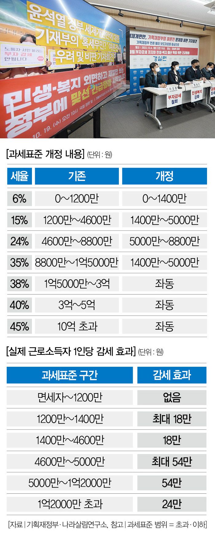 # 2022년 윤석열 정부가 세법을 개정하겠다고 나섰다. 명분은 그럴듯했다. "(세법 개정은) 고물가ㆍ고금리 시대인 만큼 서민과 중산층의 세금 부담을 덜어주기 위함이다. 법인세 개정으로 중소기업들이 혜택을 입을 것이다(당시 추경호 경제부총리 겸 기획재정부 장관)."
