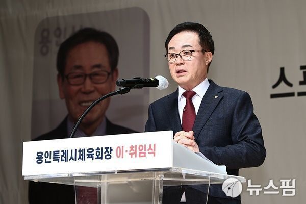 오광환 용인시체육회장이 지난 2023년 2월 25일 취임 인사를 한다. [사진=뉴스핌 DB]