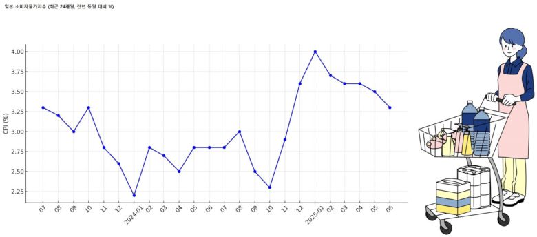 쌀값 폭등 사태를 겪고 있는 일본의 6월 소비자물가지수(신선식품 제외)가 전년 대비 3.3% 올랐다,