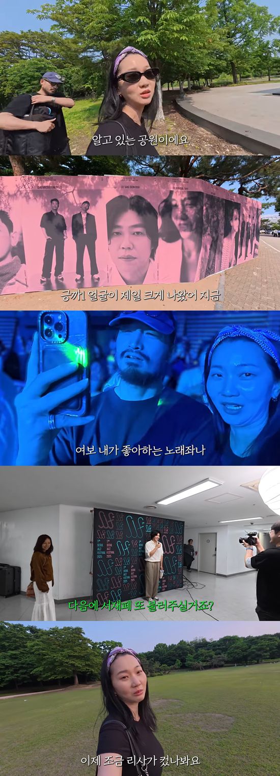 장윤주가 올림픽 공원을 찾은 이유는 서울재즈페스티벌(이하 서재페)에 참여한 이상순 공연을 보기 위해서. 그는 벽면에 붙여진 이상순의 사진을 보며 "제일 크게 나왔다"라고 이야기했다.