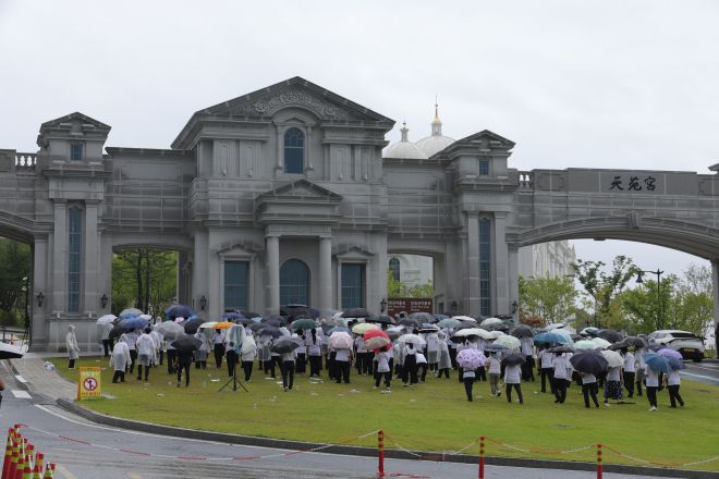 김건희 특검, 통일교 압수수색 - 김건희 여사의 각종 의혹들을 수사하는 민중기 특별검사팀이 통일교 시설과 관계자를 대상으로 압수수색에 나선 18일 오전 경기도 가평군 통일교 본부에서 신도들이 집회를 열고 있다. 2025.7.18 연합뉴스 |