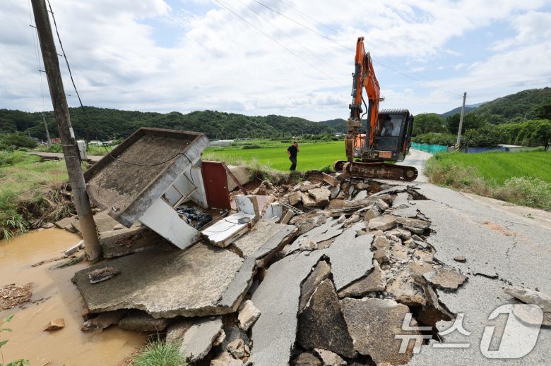 광주 북구 망월동에 위치한 대형관정이 붕괴되어 길이 끊겨 있다. 2025.7.18/뉴스1 ⓒ News1 박지현 기자