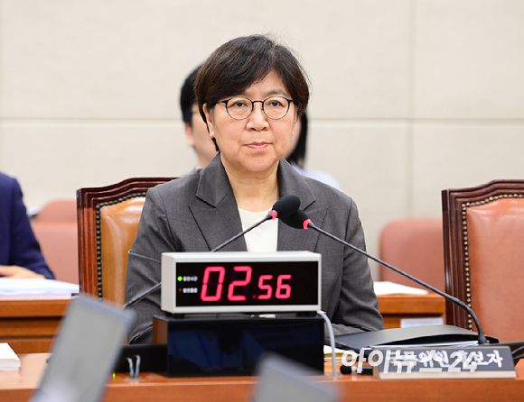 정은경 보건복지부 장관 후보자가 18일 오전 서울 여의도 국회 보건복지위원회에서 열린 인사청문회에 참석해 김미애 국민의힘 간사의 자료 제출과 관련 항의를 듣고 있다. [사진=정소희 기자] |