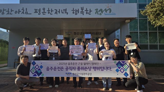 정선군시설관리공단(이사장 유영수)은 음주운전 및 숙취운전의 위험성에 대한 경각심을 높이고 안전한 교통문화 조성을 위해 18일 ‘음주운전 근절 릴레이 캠페인’에 동참했다고 밝혔다.