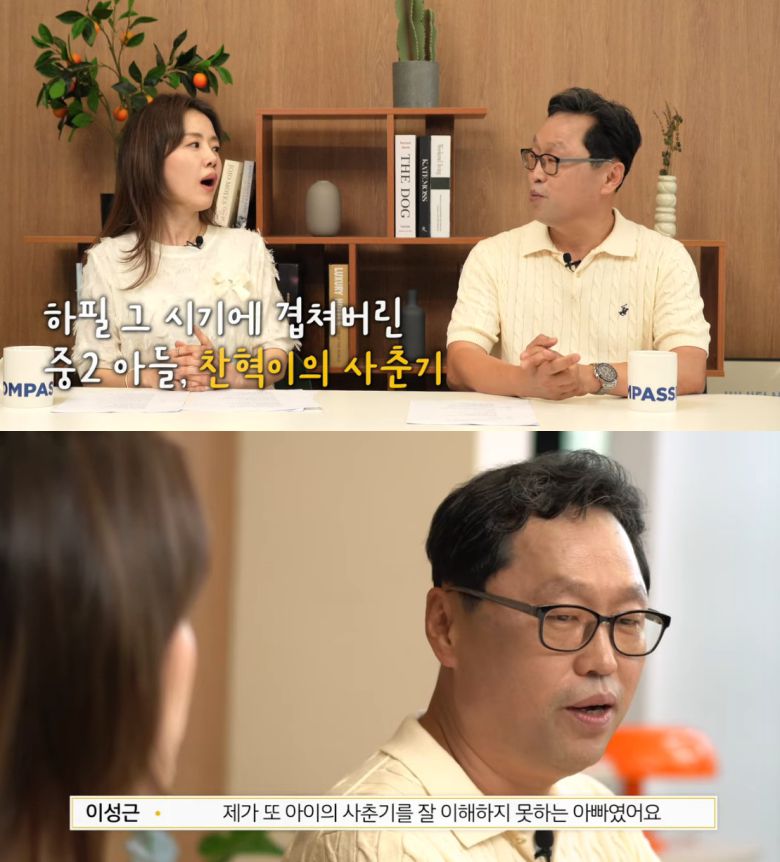 "제 성장 과정에서 결핍과 상처가 있었다"는 그는 자신이 사춘기 시절을 보내지 못했기 때문에 아이를 전혀 이해하지 못하는 아빠가 되어 있었다"고 털어놨다.
