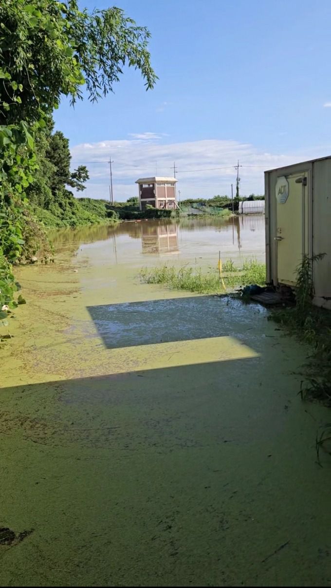 나주시 산포면 등정리 배수펌프장 인원 침수 현장/사진=독자제공 |