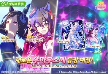 이번 업데이트에서는 봄에 열리는 댄스파티 콘셉트의 특별 의상을 착용한 육성 우마무스메 ‘[Flowing Blue] 다이이치 루비’와 ‘[Joyful Jamboree!] 다이타쿠 헬리오스’를 공개했다.